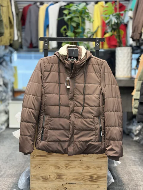 کاپشن مدل لویی رنگ قهوهای با پارچه سیلیکونی مقاوم در برابر سرما و رطوبت، پر شده با الیاف سبک و گرم لایکو، دارای حاشیه کلاه نرم خز برهای و کلاهی جداشدنی، با زیپ جلو و جیبهای جانبی، مناسب بوتیکها در سایزهای M تا 2XL به صورت عمده.